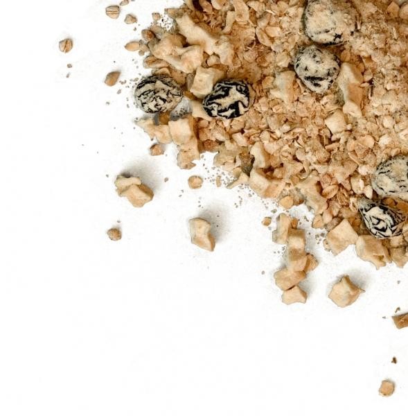 Koostis: Kaerahelbed 25%, piimpulber, kookosõli, suhkur, nisuhelbed, rosinad 10%, maapähklid 10%, õun 6%, sool, säilitusaine E220.