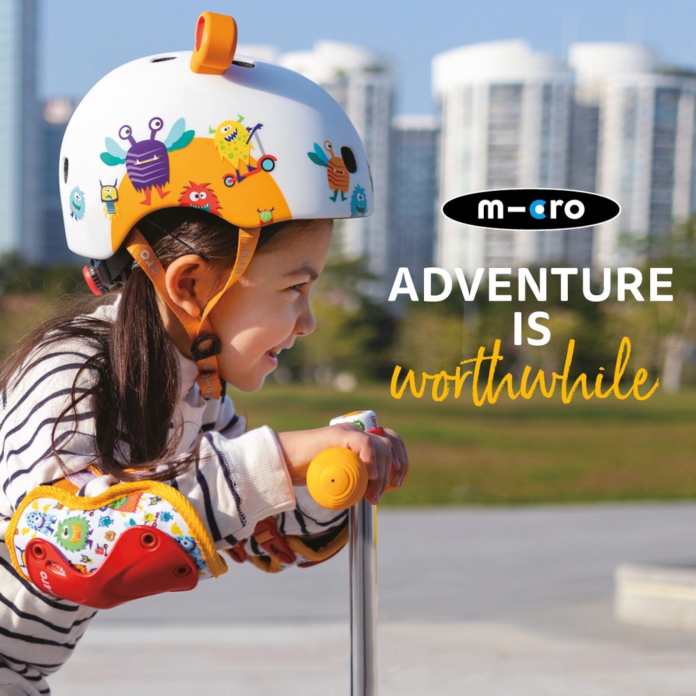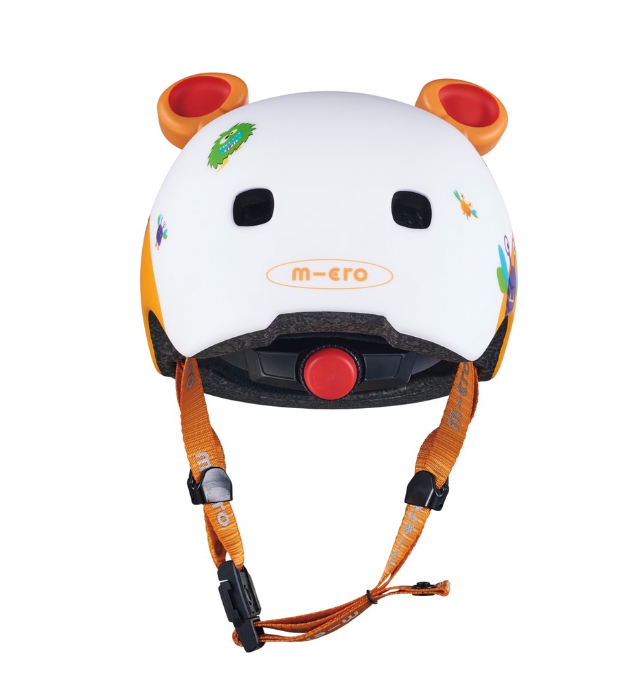 Micro 3D Monsters laste kiiver, kus on ühendatud lahe disain ja turvalisus! Kiiver on reguleeritava suurusega, sellel on lisapehmendused, innovatiivne kergelt sulguv magnetkinnitus ja punane LED tuli.