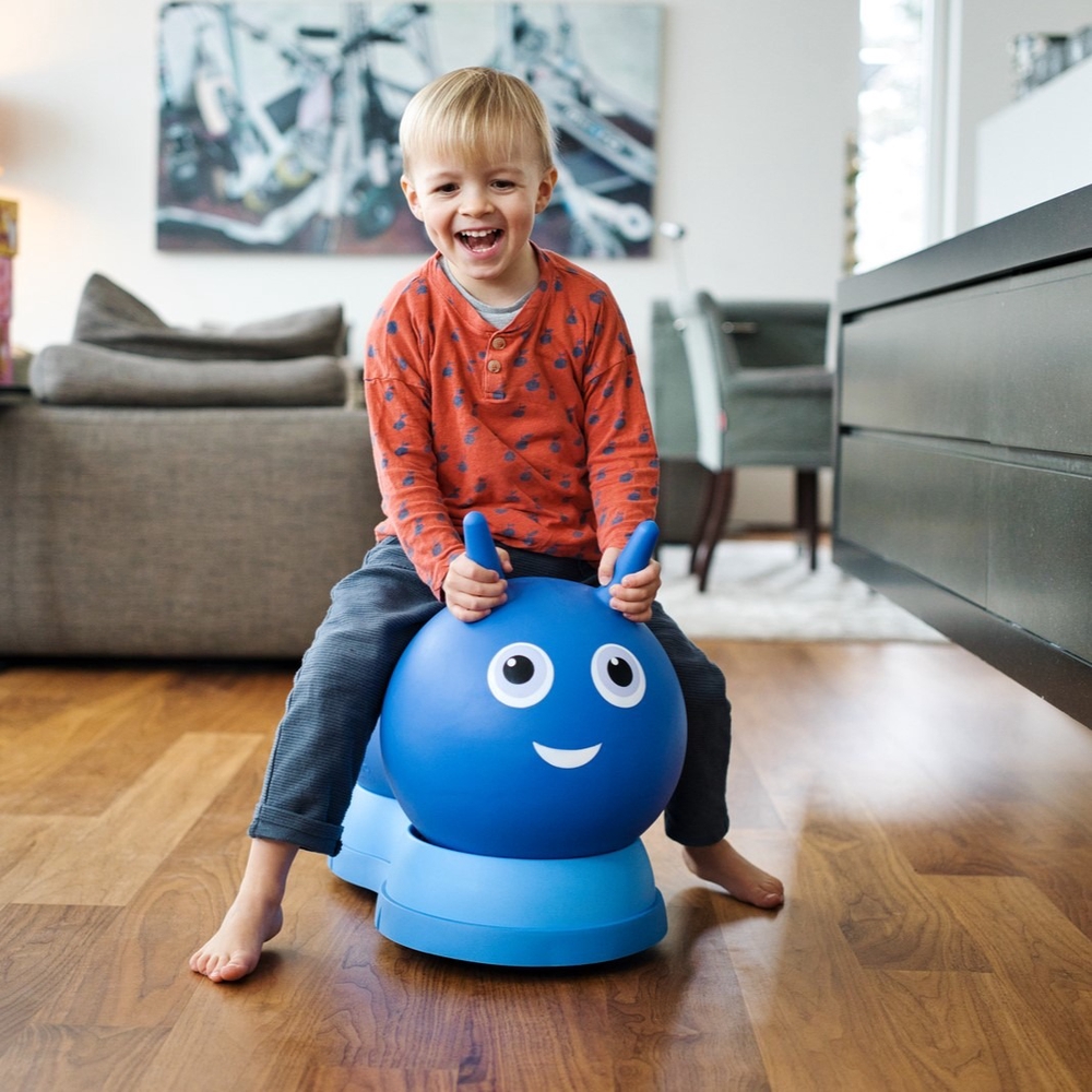 Ergonoomilise disainiga ratastel asetsev hüppepall, mis on välja töötatud koostöös Šveitsi meditsiinitöötajatega spetsiaalselt väikelaste ja koolieelsete laste arengut silmas pidades.