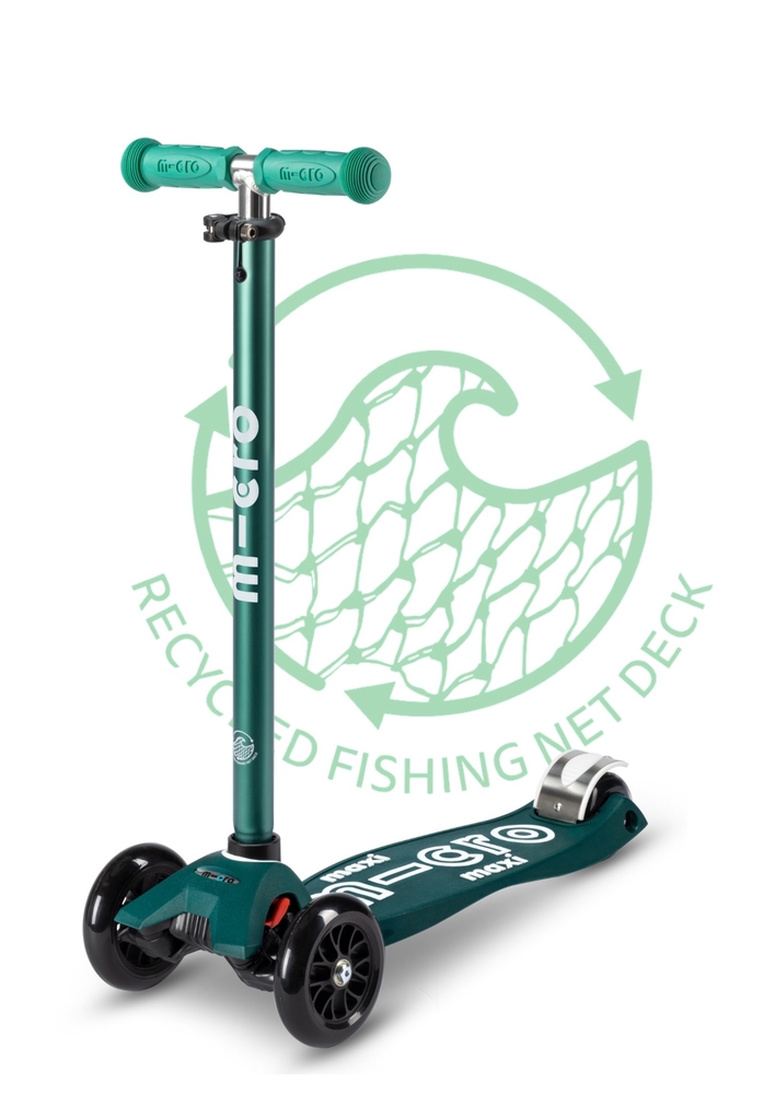 Micro Maxi Deluxe ECO tõukerattal on kõik tavapärased Maxi Deluxe omadused, kuid erinevalt teistest tõukeratastest on kõigi ECO sarja tõukerataste valmistamisel taaskasutatud ookeanidesse kogunenud kalavõrke, köisi ja plasti.
