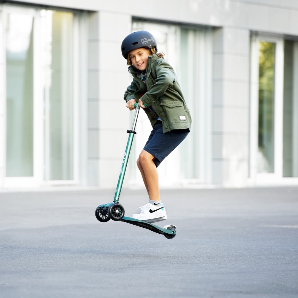 Micro Maxi tõukeratastel on ainulaadne patenteeritud juhtimismehhanism, mistõttu saab seda tõukeratast lisaks käepidemest suunamisele juhtida ka keharaskust kallutades. Nii on tagatud väikese lapse parem tasakaalutunnetus ja sujuvam liiklemine. Tänu pehmetele polüuretaanist ratastele ja vastupidavale klaasfiibriga tugevdatud seisulauale on sõit sujuv ka konarlikul teel. Kuna rattad ei jäta põrandale jälgi, sobib see tõukeratas hästi ka sisetingimustes kasutamiseks.