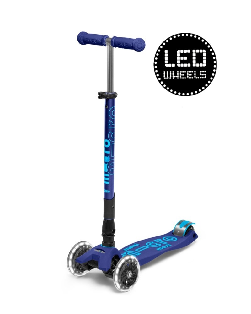 Micro Maxi Deluxe LED kokkuvolditav tõukeratas on Maxi Deluxe mudeli täiendatud versioon, millel on lisaks kõigile tavapärastele Maxi Deluxe omadustele ees kaks LED tuledega ratast ja tõukeratta saab vajadusel ühe lihtsa liigutusega kokku voltida. Selliselt on tõukeratast lihtsam kaasas kanda või hoiustada.