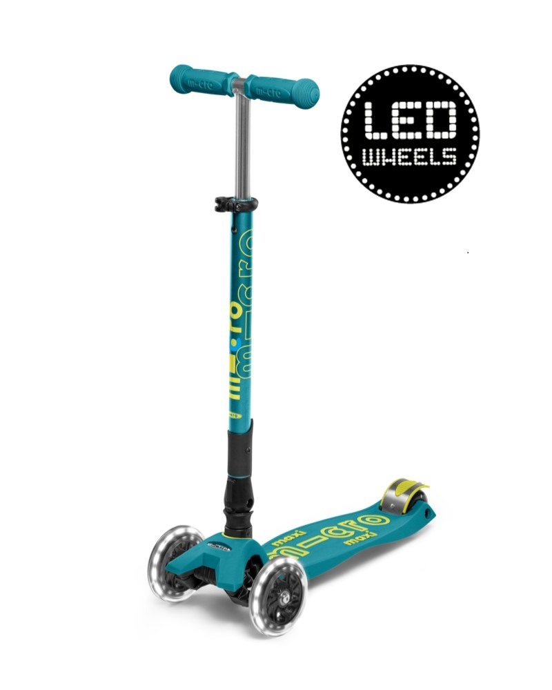 Micro Maxi Deluxe LED kokkuvolditav tõukeratas, sinakasroheline