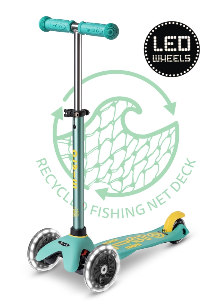 Micro Mini Deluxe ECO LED tõukerattal on kõik tavapärased Mini Deluxe omadused, kuid sellel on ees kaks LED tuledega ratast ja erinevalt teistest tõukeratastest on kõigi ECO sarja tõukerataste valmistamisel taaskasutatud ookeanidesse kogunenud kalavõrke, köisi ja plasti.