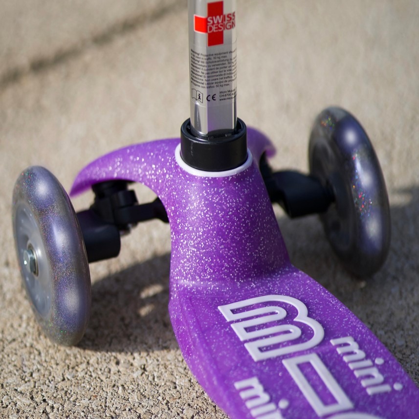 Micro Mini Deluxe Fairy Glitter tõukeratas on Mini Deluxe mudeli täiendatud versioon, millel on lisaks kõigile tavapärastele Mini Deluxe omadustele ees kaks LED tuledega ratast ja nii tõukeratta seisulaual, piduritel kui ka LED ratastel on ainulaadne sädelev viimistlus, mis muudab selle tõukeratta muinasjutuliselt säravaks ja silmatorkavaks!
