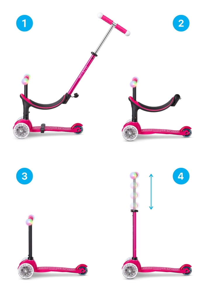 See multifunktsionaalne ergonoomiline tõukeratas kasvab koos lapsega, olles pisemate jaoks istme, jalatugede ja lükkevardaga vanemate poolt juhitavaks sõidukiks, hiljem ilma lükkevardata jooksurattaks ja lõpuks saab kõik lisad eemaldada ning tõukeratas muutub Micro Mini Deluxe LED tuledega rataste ning käepidemetega säravaks versiooniks. Selle tõukerattaga särad sama maagiliselt kui täht!