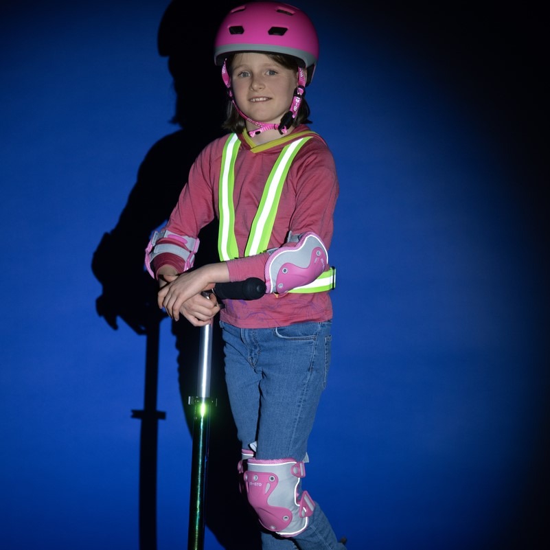 Micro põlve- ja küünarnuki kaitsmed, helkuriga roosa