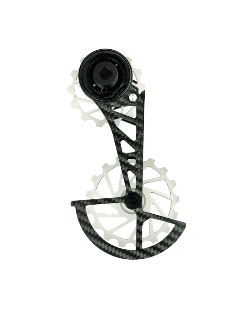 Nova Ride OSPW SRAM AXS RED/FORCE 12S jaoks mõeldud oversized tagavahetaja korv on valmistatud kõrgtasemelistest materjalidest – ülikerge süsinikkiud ja keraamilised laagrid.